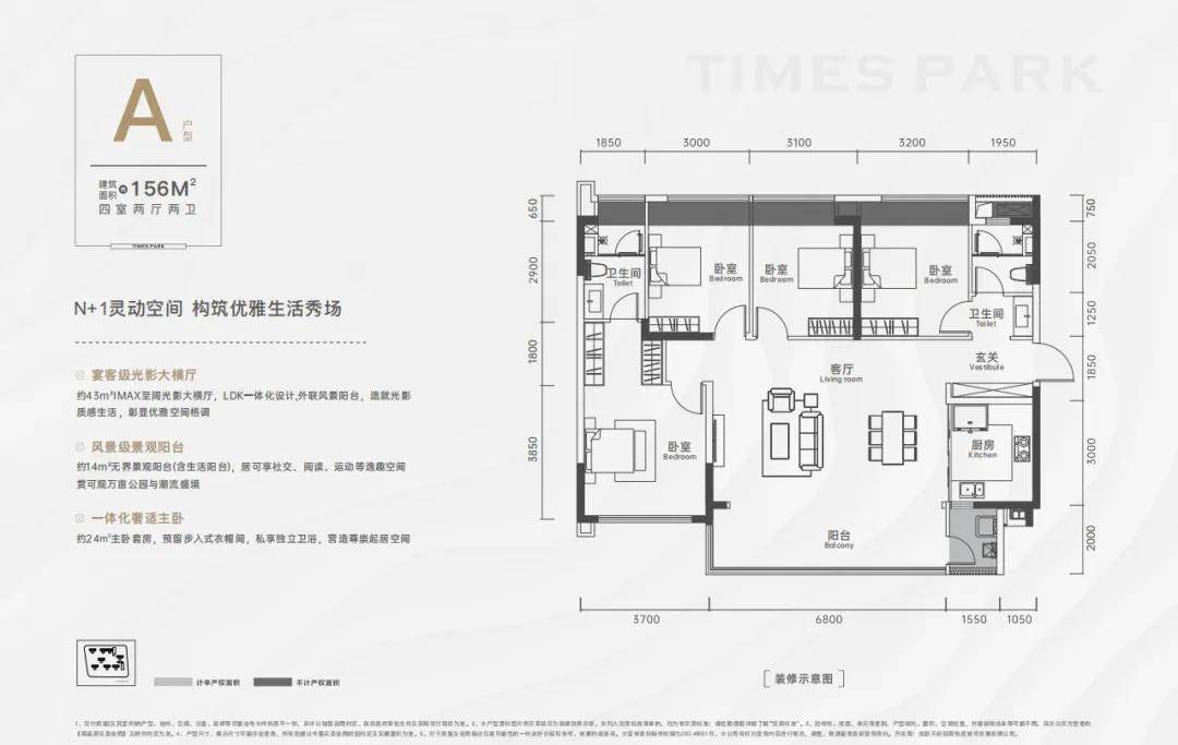 最时兴的横厅打算该户型采用时下,标准超12米三开间朝南的。中其,约6.8米餐客堂开间,约44㎡空间达,感安宁标准。