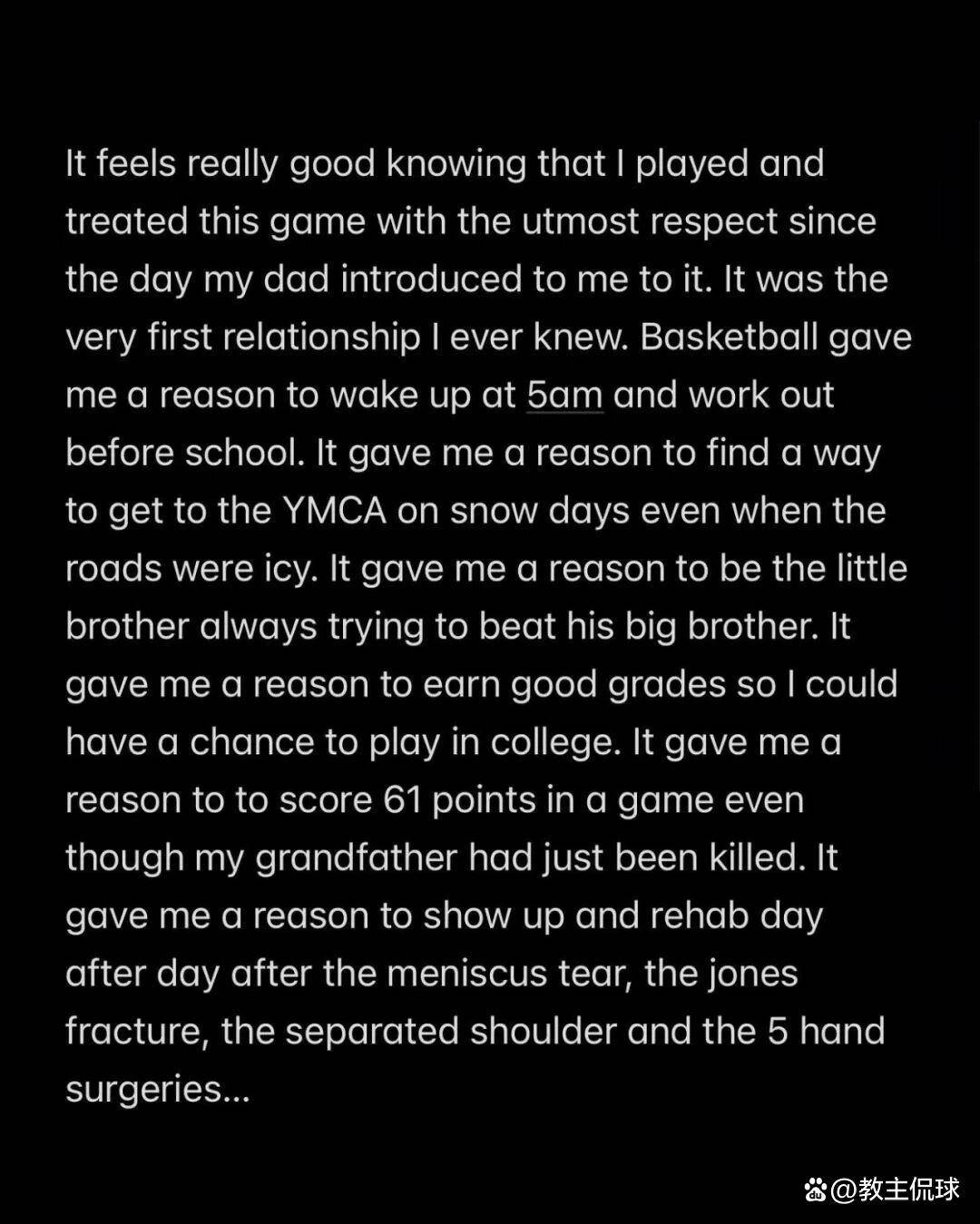 当前“,说再见了我真的要。个年龄的年华之后正在走过了二十一,手中的篮球我断定放下,生活的句点画上我职业。”