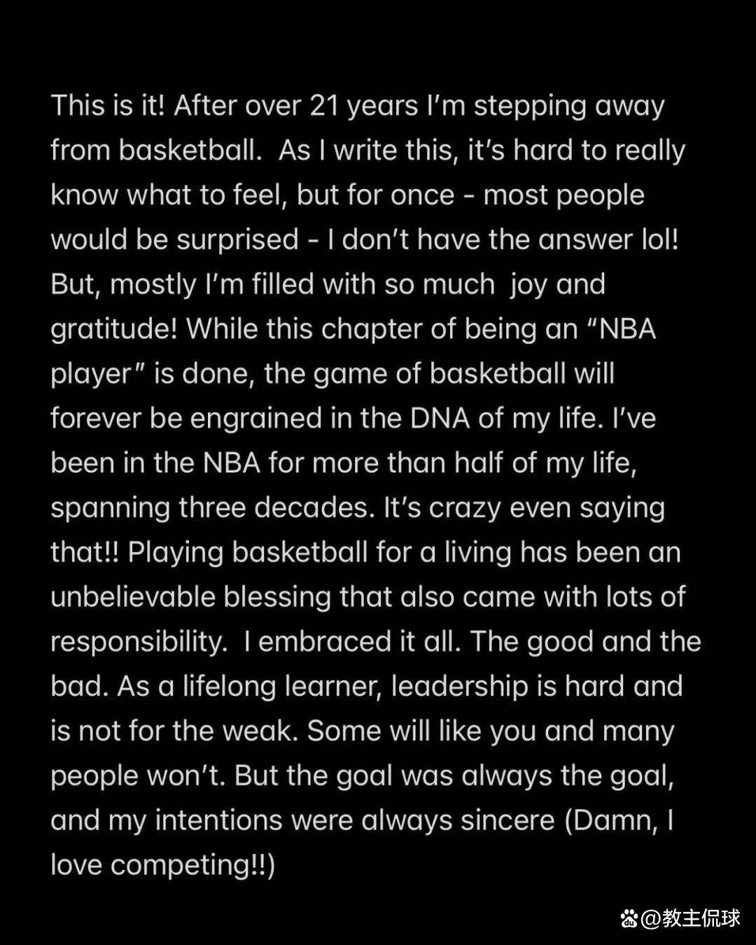 人生中跨越一半的岁月“我正在NBA渡过了,一世纪的初叶、十年、以及二十年代影迹超越了三个明后的十年——二十。思来当前,感应难以想象连我本身都。”